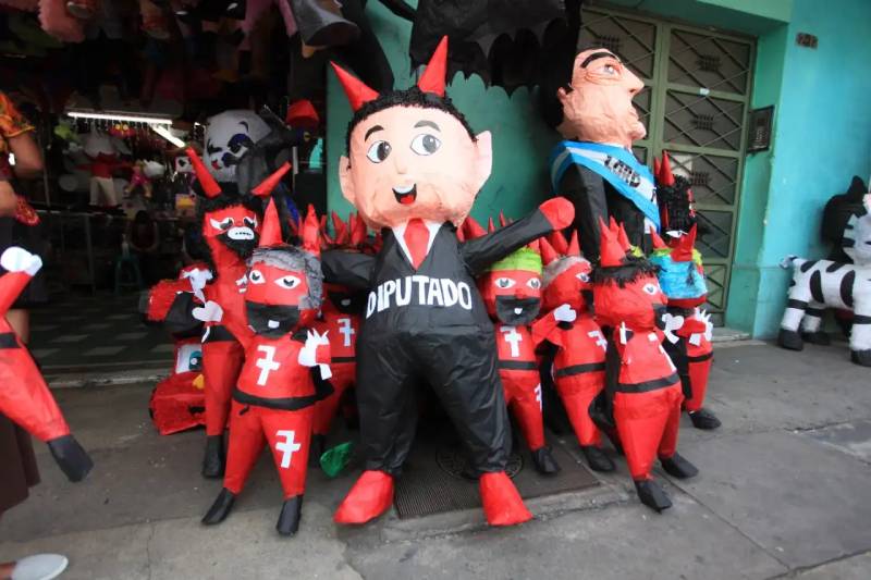 En años recientes, las piñatas se han convertido en instrumentos de sátira política. El artesano ha creado figuras de políticos locales implicados en corrupción, como la fiscal general Consuelo Porras, e incluso del expresidente estadounidense Donald Trump con uniforme del ICE, transformando la festividad en una crítica ardiente y simbólica.