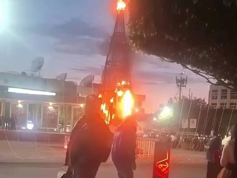 Un grupo de personas incendió el árbol de Navidad de Zitácuaro, instalado en la Plaza Cívica Benito Juárez, en protesta por la muerte de Ángeles Esquivel, una joven de 24 años, presuntamente a manos de agentes de Tránsito municipal.